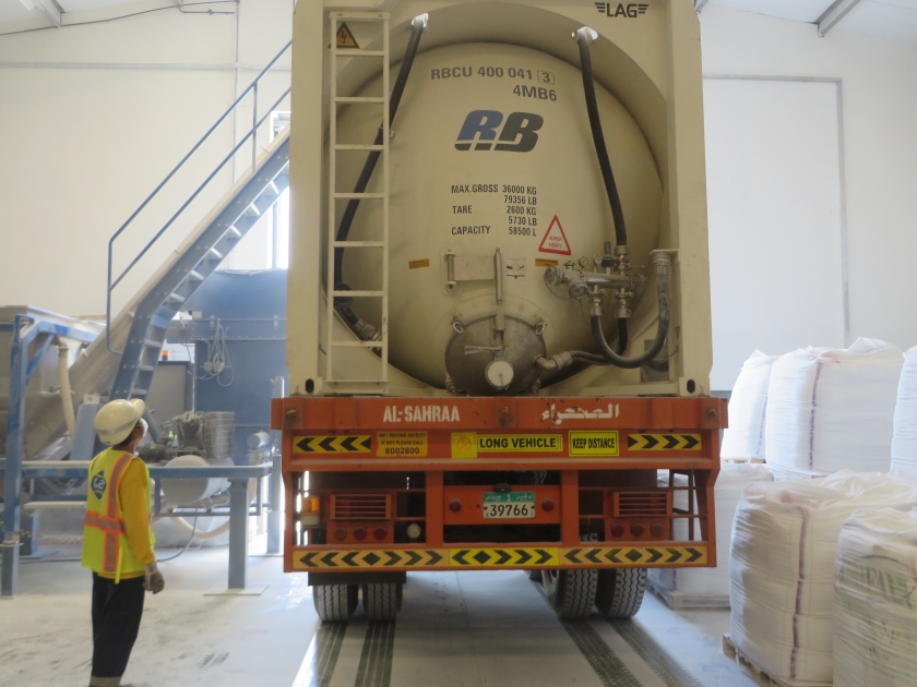 وستعمل "جي إيه سي" على استلام التالك من منجم "آي إم آي فابي" في إيطاليا وشحنها بحراً إلى أبوظبي، حيث ستتولى مسألة التخليص الجمركي، قبل نقلها إلى مستودع "جي إيه سي" في ميناء زايد. وسيتم هناك تحميل التالك في حاويات "آر بي" التي يبلغ طولها 40 قدماً، باستخدام آلة متخصصة بنقل الحمولة من "آر بي"، استعداداً لنقل التالك إلى منشأة التصنيع في الرويس. وبعد تفريغ الحمولة سيتم إعادة الحاويات الفارغة إلى المستودع. وسيقوم فريق "جي إيه سي" بتنفيذ 12 عملية تفريغ على الأقل شهرياً.