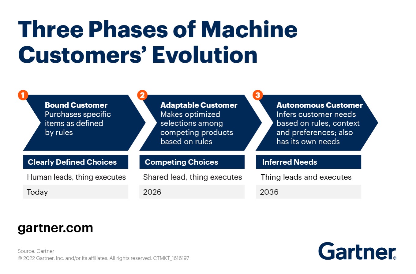 وفي الكتاب الجديد الصادر عن "جارتنر" بعنوان عندما تصبح الآلات عملاء، فإن دون شيبنريف، نائب الرئيس للأبحاث لدى "جارتنر" وقائد فريق أبحاث تجربة العملاء لديها، إضافة إلى مارك راسكينو، نائب الرئيس للأبحاث وقائد فريق أبحاث الرؤساء التنفيذيون لدى "جارتنر" يحاولان استعراض ظاهرة العملاء الآليين التي سوف تلعب دورا مهما في مجموعة واسعة من قرارات شراء المستهلكين وقطاع الشركات على حد سواء. كما يحاول المؤلفان في الكتاب نفسه استعراض وتوقّع التحديات الأساسية والفرص المتاحة أمام الشركات، والطرق الأمثل لاستفادة هذه الشركات منها.
