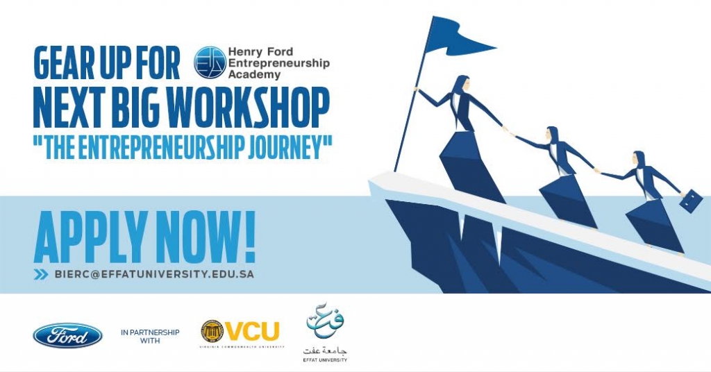 وخلال ورشة العمل هذه، ستحصل رائدات الأعمال المشاركات على مدى ثلاثة أيام، من 9 الى 11 جمادى الثاني (7 إلى 9 مارس 2017م) على أحدث التدريبات التي يقدمها أساتذة جامعة فيرجينيا كومنولث وجامعة عفّت، وعلى أفكار مستلهمة من روّاد ورائدات الأعمال في المملكة، تتعلق بالخطوات والممارسات اللازمة لتأسيس مشروعات جديدة، والمحافظة عليها. وبالاستفادة من خبرة ورشات العمل السابقة لأكاديمية هنري فورد لريادة الأعمال، وبالتعاون مع جامعة فرجينيا كومنولث وجامعة عفّت، تتيح الأكاديمية أمام رائدات الأعمال السعوديات فرصة كبيرة للنجاح في أعمالهنّ مستقبلاً، وتُحفّزهن على التفكير والتصرّف كرائدات أعمال حقيقيات.
