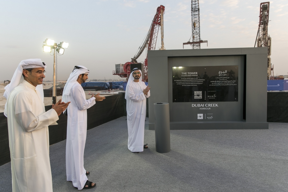 أطلق صاحب السمو الشيخ محمد بن راشد آل مكتوم، نائب رئيس الدولة رئيس مجلس الوزراء حاكم دبي، رعاه الله، الأعمال الإنشائية لبرج خور دبي، المعلم العمراني الجديد الذي سيصبح أطول مبنى في العالم بأسره عند اكتمال أعماله الإنشائية في 2020.