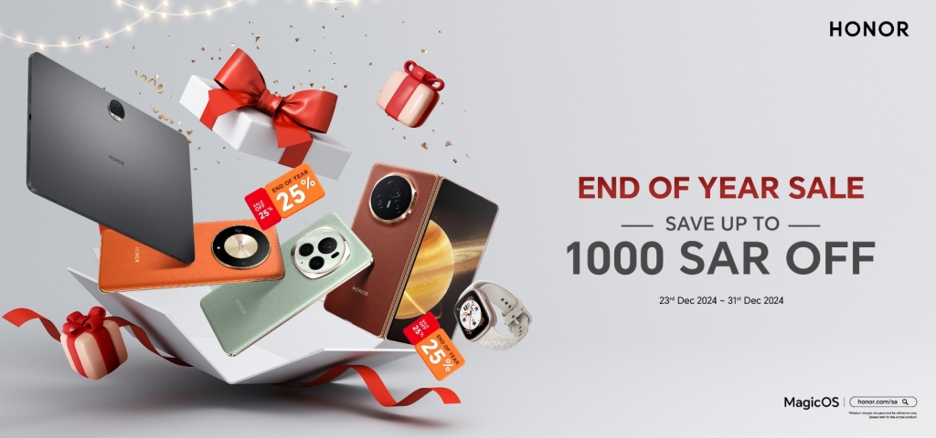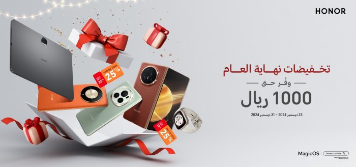 أعلنت اليوم العلامة التجارية العالمية HONOR عن تخفيضات نهاية العام المنتظرة، التي تقدم عروضًا استثنائية وتوفيرًا على مجموعة من أكثر منتجاتها شهرة. من 23 ديسمبر إلى 31 ديسمبر 2024، يمكن للعملاء الاستمتاع بخصومات حصرية تصل إلى 1,000 ريال سعودي على مجموعة من أبرز منتجات HONOR.
