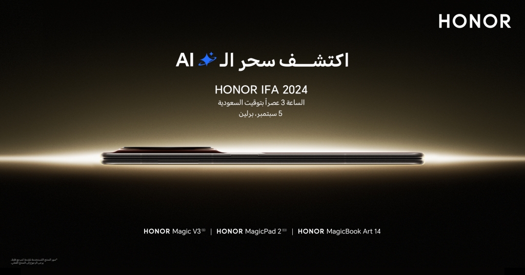 في 5 سبتمبر 2024، ستعقد علامة HONOR حدث إطلاق عالمي في برلين، والذي سيتم بثه أيضًا على الهواء مباشرة للجمهور في جميع أنحاء العالم. سيكشف هذا الحدث عن أحدث هواتفها القابلة للطي وتقنية الذكاء الاصطناعي، والتي تضم HONOR Magic V3 وHONOR MagicPad 2 وHONOR MagicBook Art 14. ستتاح للحاضرين الفرصة لتجربة كيف تضع منتجات HONOR متعددة السيناريوهات معايير جديدة في التصميم والأداء التكنولوجي.
