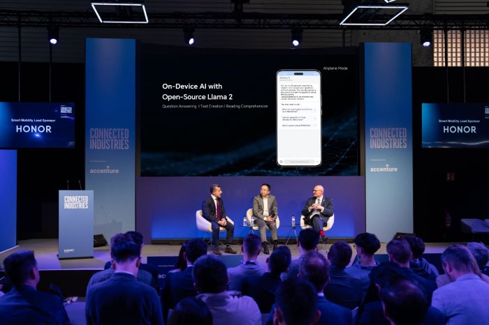 خلال مؤتمر MWCفي برشلونة لعام 2024، اعتلى جورج تشاو، الرئيس التنفيذي لشركة HONOR Device Co., Ltd، المسرح بالمشاركة مع روّاد الصناعة لإجراء حلقة نقاش مثيرة للاهتمام. وضمت الجلسة، التي حملت عنوان "وضع الانسان أولاً عند تطوير الذكاء الاصطناعي: الاعتبارات الأساسية عند تقديم تقنيات الذكاء الاصطناعي للأجهزة الذكية"، أيضاً جون هوفمان، الرئيس التنفيذي لشركة GSMA Ltd.، وأليكس كاتوزيان، المدير العام لمجموعة MCX، Qualcomm Technologies، Inc.، وشددوا على أهمية صناعة أجهزة مدعومة بالذكاء الاصطناعي، والتي تقدم تجربة سهلة الاستخدام تضع الإنسان في المقام الأول مع ضمان خصوصية المستخدم.