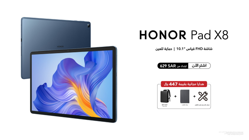 جهاز HONOR Pad X8 مُتاحًا الآن في أسواق المملكة العربية السعودية بسعر 629 ريال سعودي نسخة (3GB+32GB) و699 ريال سعودي لنسخة (4GB+64GB) ، من خلال مكتبات جرير، extra ومتاجر بيع بالتجزئة أُخرى. عند الشراء، سيحصل المُستخدمين على هدايا مجانية بقيمة 477 ريال سعودي، تتضمن شنطة ظهر، حافظة، وضمان لدول مجلس التعاون الخليجي.