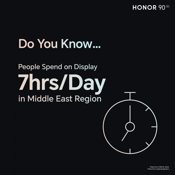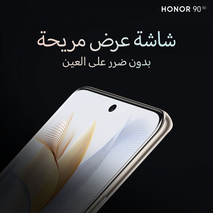 مع هذا الإطلاق الرائد، تذهب HONOR إلى أبعد الحدود لتقديم أفضل التقنيات فيما يختص بالعناية بالعيون عند استخدام الهاتف. تم تجهيز HONOR 90 بشاشة مريحة بدون ضرر على العين، وهي الأولى من نوعها في الصناعة والتي تتميز بتقنية تعتيم PWM تبلغ 3840 هرتز، وهي الأعلى في الصناعة للحفاظ على تجربة مشاهدة أكثر راحة وخالية من الوميض وتقليل إجهاد العين وتوفير تجربة مشاهدة مريحة دائماً.