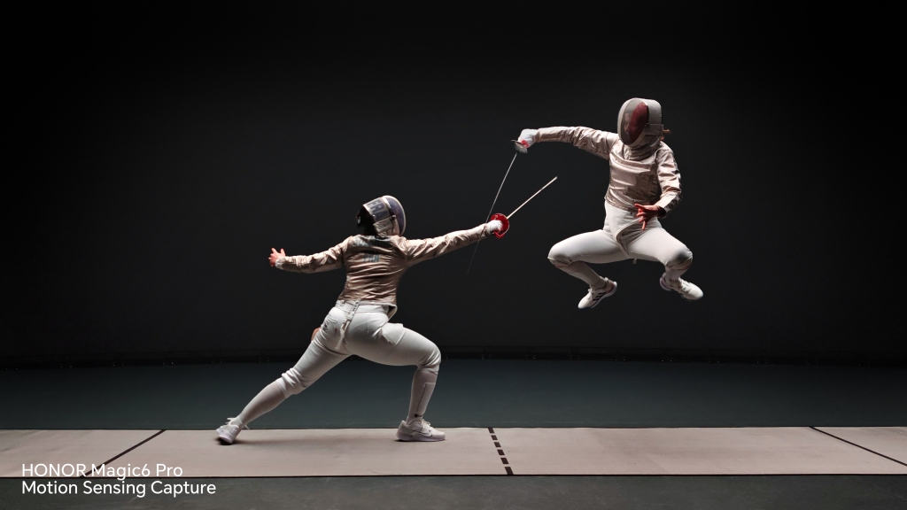 وكشفت العلامة التكنولوجية العالمية عن خمس صور توضح كيفية قيام HONOR Magic6 Pro بالتقاط تقنيات المبارزة المعقدة، مما يسلط الضوء على قدرة الجهاز على تصوير الحركات السريعة بدقة متناهية. بالإضافة إلى ذلك، كشفت اللقطات خلف الكواليس عن 30 هاتف HONOR Magic6 Pro مثبتة لالتقاط الحركات السريعة تلقائيًا، مما يعرض بشكل أكبر القدرات المتقدمة للهاتف.