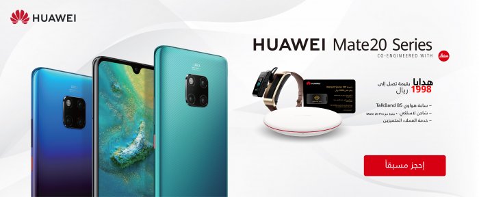 سلسلة هواتف "هواوي مايت 20" متوفرة لطلبات الحجز المسبق مع هدايا قيّمة منها ساعة ذكية وشاحن لاسلكي وخدمة هواوي VIP