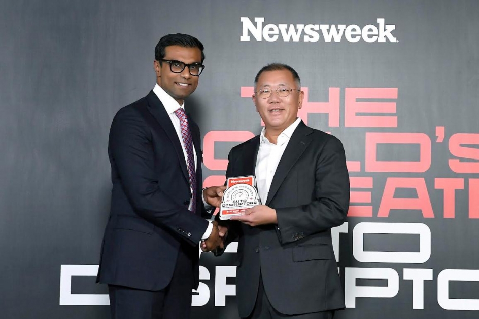 - فاز الرئيس التنفيذي لمجموعة هيونداي موتور، أويسون تشونغ، اليوم بجائزة "صاحب الرؤية للعام" ‘Visionary of the Year’ في افتتاحية أضخم حدث من نيوزويك Newsweek لقادة التغيير في صناعة السيارات.