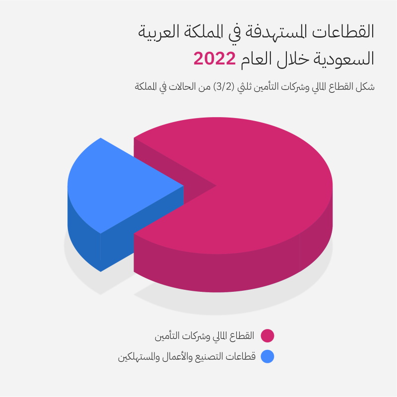 ووفقًا للتقرير، فقد شكل قطاع الخدمات المالية والتأمين ثلثي الحالات في المملكة، في حين توزعت البقية على شركات ومؤسسات التصنيع والخدمات المهنية والتجارية والاستهلاكية.