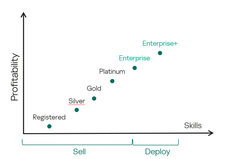 وأعلنت كاسبرسكي عن تقديم تخصصين جديدين للشركاء توفر لهم من خلالهما مزايا عند بيع الحلول المؤسسية ونشرها، وهما: التخصص المؤسسي للشركاء من الفئتين الذهبية والبلاتينية، والثاني تخصص "إنتربرايز بلاس" (Enterprise+) للشركاء البلاتينيين حصرياً. ويتيح التخصصان للشركاء الحصول على خصومات إضافية لزيادة مبيعات منتجات الخبراء، وتأهيليهم للحصول على أولوية الدعم قبل البيع من كاسبرسكي، وإطلاق أنشطة التسويق المشتركة لحلول المؤسسات، فضلاً عن مزايا أخرى. ويمكن للشركاء الذين يقدمون خدمات الأمن السيبراني المتقدمة لعملائهم، بما في ذلك نشر حلول كاسبرسكي، الحصول على تخصص "إنتربرايز بلاس" (Enterprise+). وسيكون الشركاء في هذا التخصص مؤهلين للحصول على تعويض عن خدمات "إثبات المفهوم" والنشر، إلى جانب منحهم قسائم التدريب الفني، والكثير من المزايا الأخرى.