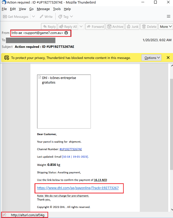 طرود لم يتم تسليمها: بهدف استغلال الفضول عند الناس، تلقى العديد من الأشخاص رسائل إلكترونية وأخرى نصية من خدمات البريد والبريد السريع، مقترنة بروابط لتأكيد الدفع أو إلغاء الاشتراك. ويؤدي النقر فوق هذه الروابط إلى إعادة توجيه الأفراد إلى صفحة مزيفة لسرقة معلومات حساسة.