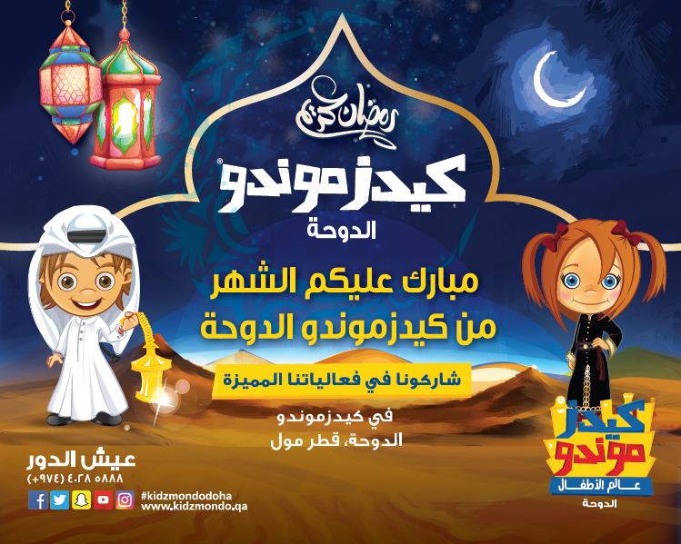 "تستقبل "كيدزموندو" الدوحة أول شهر رمضان لها بمجموعة مميزة من الأنشطة المستوحاة من الشهر الكريم والمخصصة لكيديزنز (مواطنو كيدزموندو)، حيث سيستمتع الأطفال بالمشاركة في الاحتفال الخاص بالشهر الكريم من خلال صناعة فوانيس رمضان وعلب الهدايا، تذوق الحلويات والكعك، كما سيستمعون إلى القصص الرمضانية التقليدية التي ستعزز روحانية الشهر الفضيل."
