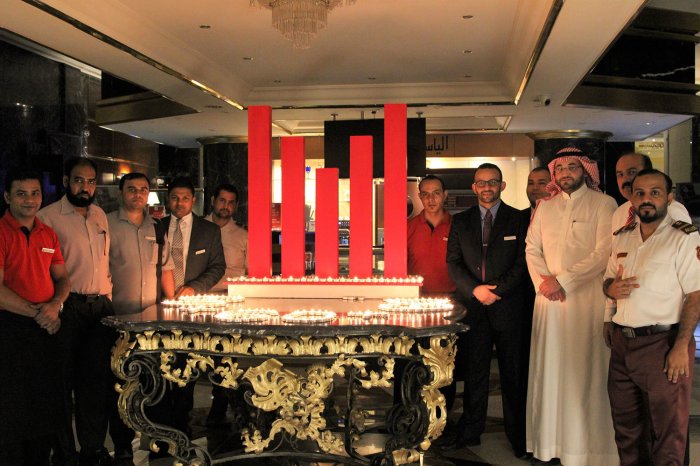 شارك أكثر من 3,000 شخص من الضيوف والمقيمين والحجاج والموظفين في فندق وأبراج مكة ميلينيوم في المبادرة العالمية من خلال إطفاء الأنوار والأجهزة الكهربائية غير الضرورية بما فيها اللافتة الخارجية والبهو الداخلي للفندق وبهو الاستقبال. كما استضاف الفندق المشاركين الذين اجتمعوا في البهو خلال ساعة الأرض لعشاءٍ تنيره الشموع.