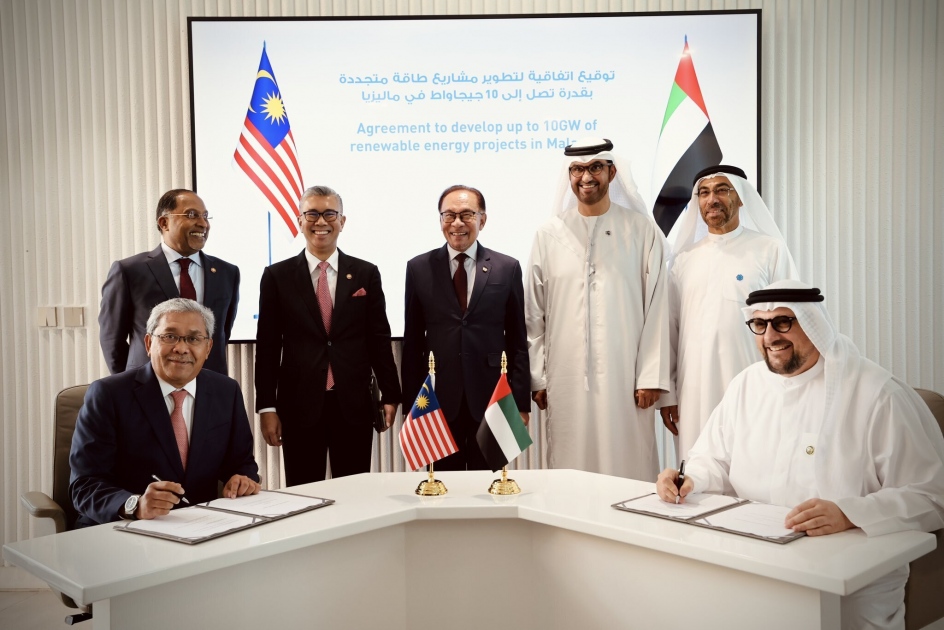 وبهذه المناسبة، قال معالي الدكتور سلطان بن أحمد الجابر:"تماشياً مع رؤية القيادة بمدّ جسور التعاون لدعم تحقيق أهداف التنمية الاقتصادية والاجتماعية المستدامة، تسهم هذه الاتفاقية في تعزيز العلاقات الثنائية بين دولة الإمارات ومملكة ماليزيا الصديقة من خلال الشراكة في تطوير مشاريع للطاقة المتجددة والمساهمة في دعم تحقيق جهود ماليزيا للانتقال التدريجي والمنطقي في قطاع الطاقة".
