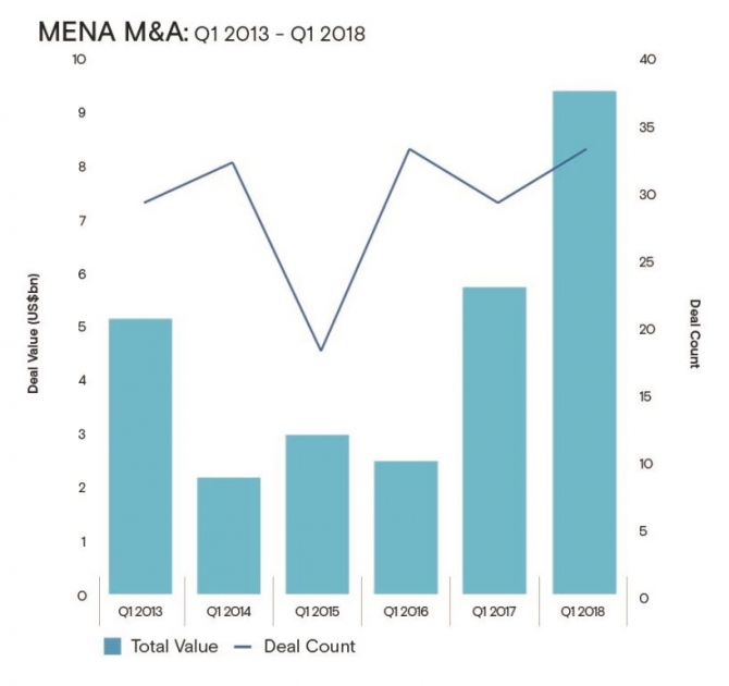 منطقة الشرق الأوسط تشهد إبرام عدد من صفقات الاندماج والاستحواذ الهامة في قطاعات الرعاية الصحية، والتأمين والتعليم خلال الربع الأول 2018