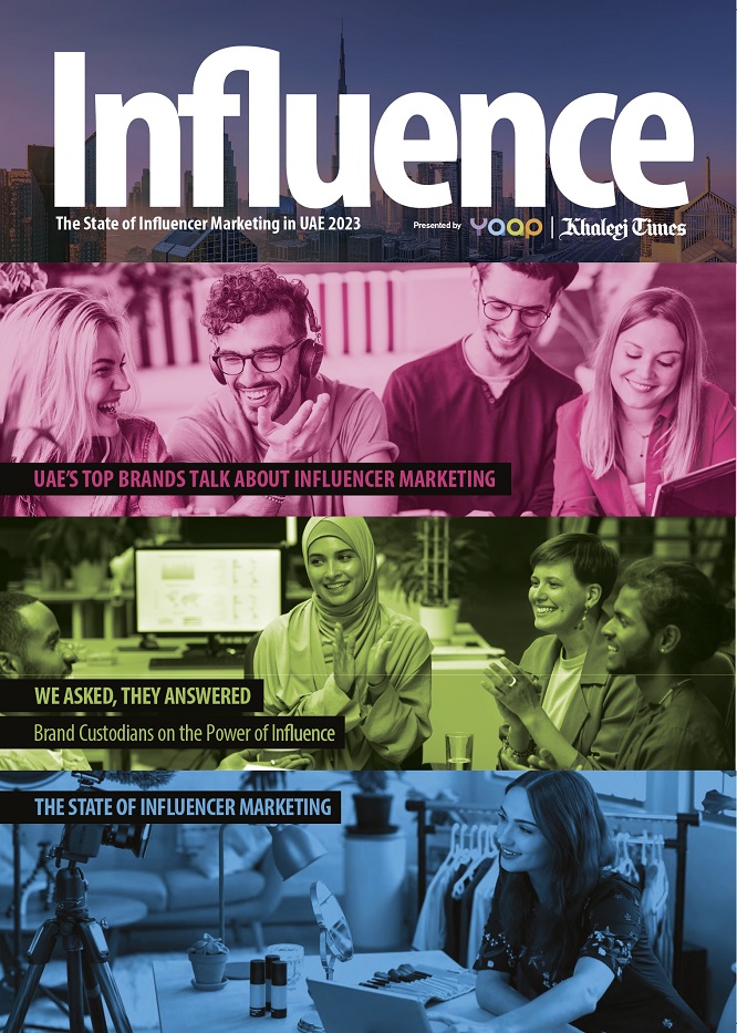أصدرت ياب، الشركة الحديثة المتخصصة بالتسويق القائم على المحتوى ومشاهير التواصل الاجتماعي، تقرير التسويق من خلال المؤثرين في دولة الإمارات لعام 2023، بالتعاون مع صحيفة خليج تايمز الرائدة. وصدر التقرير الشامل والأول من نوعه على هامش فعالية ترايب - ملتقى قادة التسويق يوم 27 أبريل، وهو يلقي نظرة معمقة على قطاع التسويق القائم على مشاهير التواصل الاجتماعي المزدهر في منطقة الشرق الأوسط.