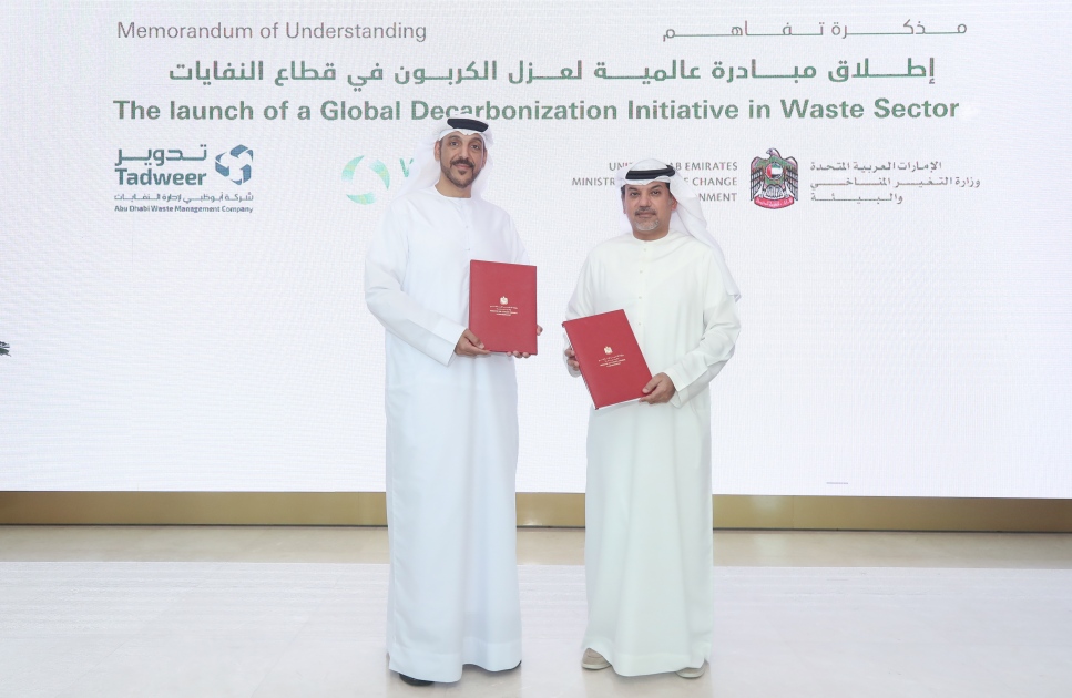 وقعت وزارة التغير المناخي والبيئة، مذكرة تفاهم، مع شركة أبوظبي لإدارة النفايات (تدوير) بهدف إطلاق مبادرة "صفر نفايات" العالمية والتي تهدف لحشد دول العالم من أجل تعزيز الجهود في مجال عزل الكربون المتولد من قطاع النفايات وإنشاء منصة للاقتصاد الدائري، وذلك في إطار عام الاستدامة والاستعدادات لاستضافة مؤتمر الأطراف COP28.