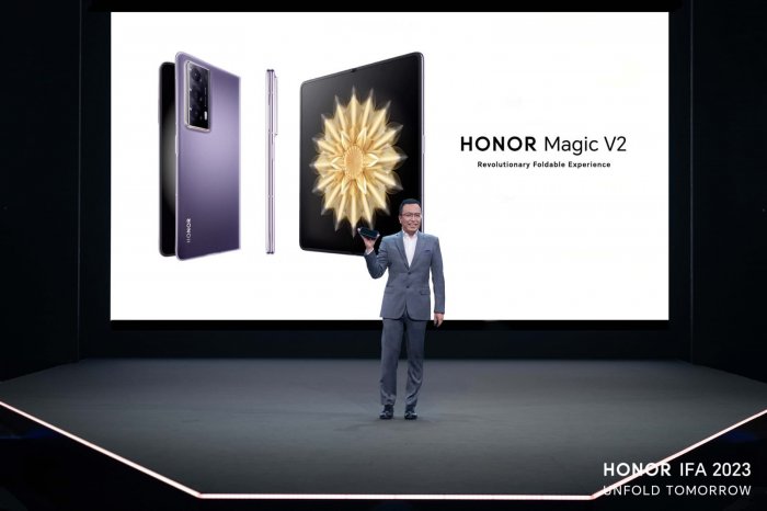 كما كشفت الشركة خلال مشاركتها في مؤتمر IFA 2023 ابتكارات رائدة تركز على الإنسان، بما فيها الهاتف الذكي القابل للطي، الأنحف والأخف وزناً Magic V2، وpurse HONOR V، والذي يقدم مفهوماً جديداً يعيد تصور الهاتف الذكي القابل للطي كحقيبة يد عصرية يمكن ارتداؤها، وتوفر إمكانيات لا حصر لها فيما يختص بالأناقة والتعبير عن الذات.