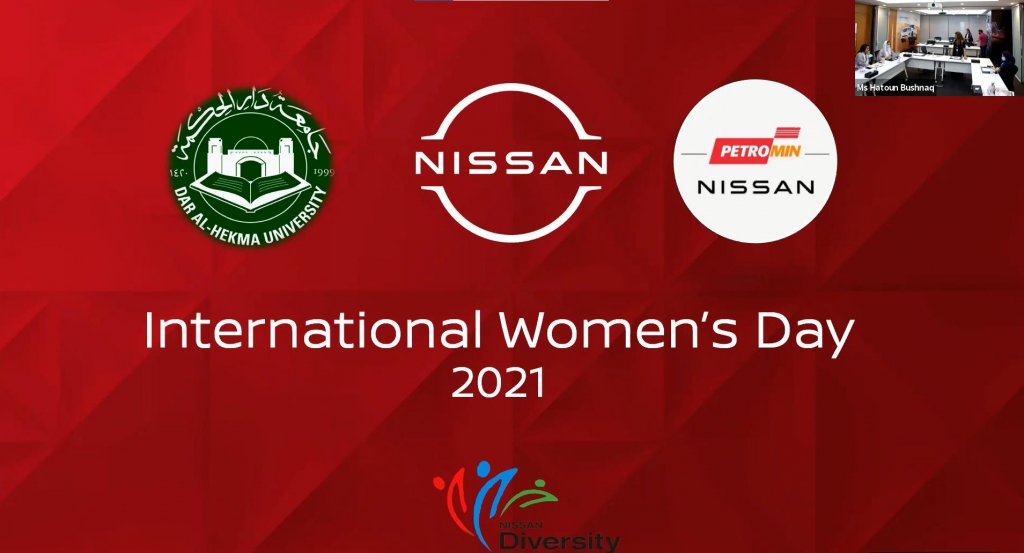 أقامت نيسان العربية السعودية بمناسبة اليوم العالمي للمرأة ندوة خاصة عبر الإنترنت لطالبات جامعة دار الحكمة، إحدى المؤسسات الرائدة للتعليم العالي للمرأة في جدة. وأدارت النقاش هتون بشناق، مدير عام علاقات الشركة وإحدى النساء السعوديات الرائدات في قطاع السيارات في المملكة.