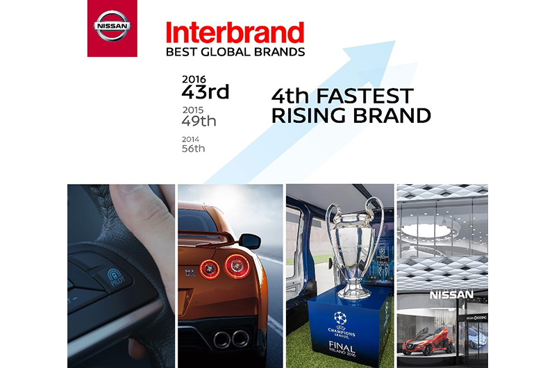 ويعكس هذا التصنيف جهود "نيسان" المتواصلة لتعزيز نتائج أعمالها من خلال ترسيخ حضور علامتها التجارية، حيث أصبحت الشركة أكثر فاعليةً في لفت انتباه المستهلكين لعلامتها من خلال تسليط الضوء على رؤيتها لـ "التنقل الذكي" الرامية إلى جعل القيادة أكثر أمناً ومتعة واستدامة. ونجحت "نيسان" العام الماضي في الترويج لعلامتها التجارية من خلال رعاية الكثير من الفعاليات رفيعة المستوى بدءاً من "أولمبياد ريو 2016" ووصولاً إلى "دوري أبطال أوروبا" لكرة القدم.