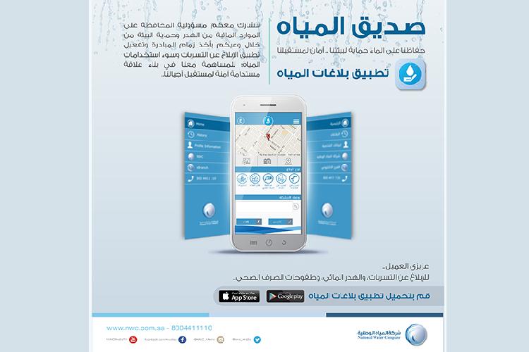 أطلقت شركة المياه الوطنية تطبيقاً لبلاغات المياه (صديق المياه) الذي يُعنى بزيادة الوعي لدى المجتمع في محافظة على المياه من الهدر وسوء الاستخدام بأخذ المبادرة بالإبلاغ عن التسربات، والإسهام بشكل مباشر في الحد من هدر هذه الثروة الناضبة غير المتجددة، والحفاظ على البيئة والموارد الطبيعية للوطن. ويأتي إطلاق الشركة لبرنامج (صديق المياه) تماشياً مع التزامها بنهج المسؤولية الاجتماعية الذي يستهدف إيجاد بيئة أفضل، وتعاملات أسهل لكافة العملاء.