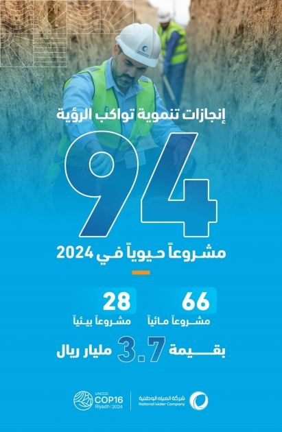 كشفت شركة المياه الوطنية أنها حققت إنجازات كبيرة على صعيد قطاعي المشاريع والتشغيل التي تنفذها، حيث أظهرت النتائج دخول العديد من المشاريع الحيوية في مناطق المملكة المختلفة حيز الخدمة، فيما شهد الجانب التشغيلي استمرار تحسّن وارتفاع مؤشرات الأداء لضخ المياه، إضافة إلى عمليات المعالجة التي تنفذها، وذلك خلال مشاركتها في مؤتمر الأطراف السادس عشر لاتفاقية الأمم المتحدة لمكافحة التصحّر (كوب 16)، مؤكدةً أنها نجحت منذ مطلع العام الحالي وحتى نهاية نوفمبر 2024 الانتهاء من تنفيذ (94) مشروعًا حيويًا في مناطق المملكة المختلفة، بكُلفة تجاوزت (3.7) مليارات ريال، مبينةً أنها تضمنت (66) مشروعًا لخدمات المياه بكُلفة (2) مليار ريال، و (28) مشروعًا لخدمات الصرف الصحي بكُلفة (1.7) مليار ريال.
