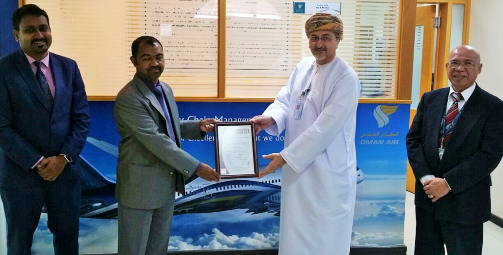 إدارة سلسة التوريد بالطيران العماني تحوز شهادة آيزو 9001:2015