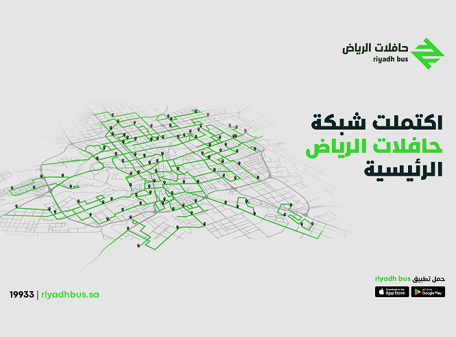 أعلنت الهيئة الملكية لمدينة الرياض، اليوم، عن اكتمال الشبكة الرئيسية لـ حافلات الرياض ضمن مشروع الملك عبد العزيز للنقل العام بمدينة الرياض.