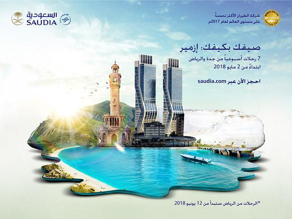 وتبدأ "السعودية" اعتباراً من 2 مايو المقبل وحتى الثامن من شهر يونيو تشغيل رحلات العمرة بين جدة وإزمير (أربع رحلات في الأسبوع) وذلك قبل بدء التشغيل الموسمي في 10 يونيو (أربع رحلات في الأسبوع من جدة –وثلاث رحلات في الأسبوع من الرياض).