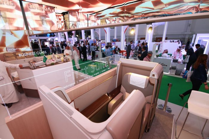 وأوضح الجاسر أن مشاركة "السعودية " في المعرض بجناح خاص ، يبرز منتجاتها وخدماتها الجديدة ، التي شملت أجنحة الدرجة الأولى ، والمقاعد المميزة لدرجتي الأعمال والضيافة على طائرات أسطولها الحديث ، الذي يشهد حالياً أكبر برنامج لتحديثه وتنميته ، بعد إستلام (61) طائرة حديثة خلال عامي (2016 / 2017م) ، إضافة إلى (11) طائرة حتى الآن خلال العام الجاري، أحدثها طائرة بوينج (B787) .
