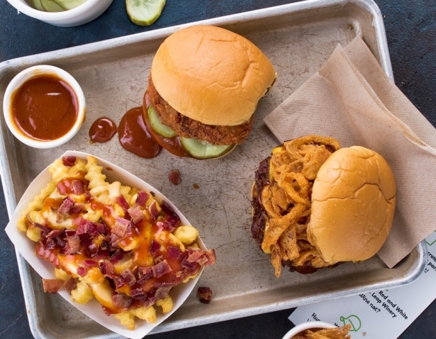 وبطاطا مقلية باربكيو – بطاطا كرينكل مقلية يعلوها لحم عجل مقدد، وجبنة وصلصة شاك باربكيو المميزة.
