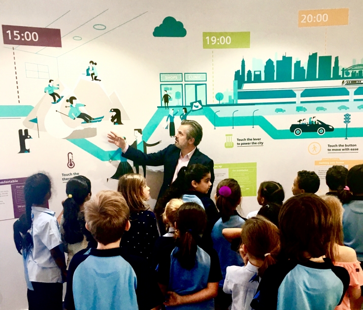 كما يسمح المركز للزوار بتجربة أدوات تفاعلية مثل السير عبر محطة لتوليد الكهرباء في الواقع الافتراضي، وتصميم مزيج حديث للطاقة للمدن من خلال التكيف مع الظروف الجوية والموارد المتاحة.