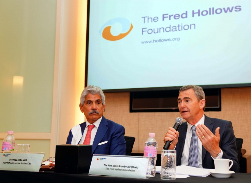 وخلال الحدث قال سعادة برامبي: "سيسهم المكتب الإقليمي الجديد في المدينة العالمية للخدمات الإنسانية ف تعزيز وتسريع جهودنا لمعالجة بعض الملايين ممن يعانون من العمى في المنطقة".