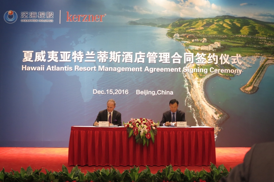 عقدت مجموعة "تشاينا أوشن وايد" الصينية وشركة" منتجع أوشن وايد باردايز" التابعة لها اتفاقية استراتيجية اليوم مع إحدى الشركات التابعة لمجموعة كيرزنر انترناشيونال القابضة المحدودة، وهي مجموعة رائدة في تطوير وتشغيل المنتجعات والفنادق الفارهة في العالم. وتقضي هذه الاتفاقية بإنشاء منتجع أتلانتس في "كو أولينا"، على مساحة 642 فدان وذلك على الشواطئ الرملية البيضاء لجزيرة "أواهو" في هاواي. ومن المتوقع أن يقدم المنتجع الجديد معايير عالية من الفخامة المميزة وتجارب ضيافة نوعية لضيوف المنتجع والمقيمين والزوار، مع اطلالات على المحيط، ومساحات خضراء خلّابة وتجارب مائية مشوّقة، كل ذلك في إطار طابع هندسة معماري جميل مستوحى من هاواي سيحظى بإعجاب الزوار. وسيكون هذا المشروع أول منتجع لأتلانتس في الولايات المتحدة الأميركية، ليضاف الى العلامة التجارية الرائدة في دبي، أتلانتس النخلة والمنتجع البارز الجديد في الصين، أتلانتس "سانيا هاينان" الذي سيفتتح في العام 2017، ومنتجع "رويال أتلانتس ريزورت أند ريزيدانسيز" في دبي. وبذلك، تتطلع "كيرزنر" الى مواصلة تطوير علامة "أتلانتس" الدولية على الصعيد العالمي.