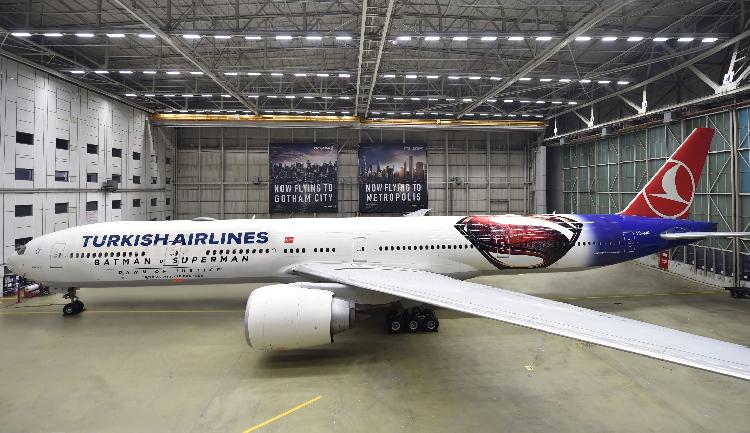 • طائرة حصرية للخطوط الجوية التركية طراز "777" مغطاة بصورة "باتمان ضد سوبرمان: فجر العدالة"