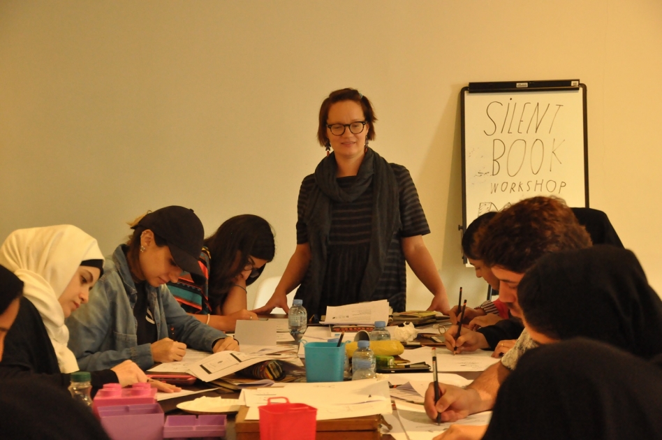 وقالت: "تتميز القصص والأساطير والحكايات بطابعها العالمي الذي باستطاعته تجاوز الحواجز اللغوية والثقافية بالصور والرسوم، وتلعب الكتب المصورة دوراً بارزاً في تجاوز هذه المعوقات، لهذا نظمنا هذه الورشة، بهدف رفد المكتبة العربية بمجموعة مميزة من الكتب الصامتة التي تحتوي على قصص مصورة دون كلمات مكتوبة يمكن لجميع الأطفال أن يفهموها، وينبغي أن نتذكر دائماً أن أعظم هدية يمكن للكتاب أن يقدمها ليست الكلمات التي يحتويها، بل الفكرة والرسالة التي يحملها".