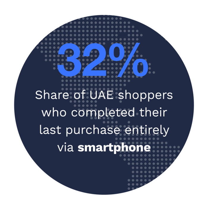 ● المتسوقون الإماراتيون الذين يستخدمون هواتفهم في المتاجر يواجهون الاحتكاك في التسوق أكثر بنسبة 9% من نظرائهم في البلدان الأخرى.