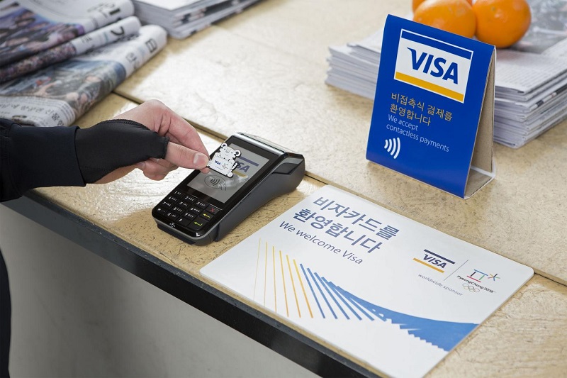 • الدبوس الأولمبي التذكاري: تم استيحاؤه من العُرف المتواجد منذ فترة طويلة والقائم على جمع الدبابيس التذكارية في دورة الألعاب الأولمبية، حيث تطرح "فيزا" في السوق أربعة دبابيسٍ فريدة من نوعها لطيّة صدر السترة تتميز بتصاميم مخصصة لألعاب بيونج تشانج 2018 لتقدّم وسائل تتيح الدفع قابلة للتحصيل للمشجعين والرياضيين ليستخدموها في المكان. وتبلغ تكلفة كل دبوس خمسة آلاف وون كوري جنوبي بالإضافة إلى المبالغ المرجوة المدفوعة مسبقاً والمدمجة التي تبلغ قيمتها 30 ألف أو 50 ألف وون كوري جنوبي.