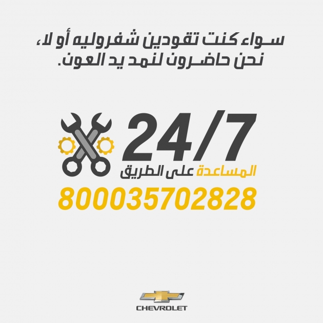 وكجزء من باقة تعهد شفروليه الكامل لما بعد البيع، يقدم برنامج شفروليه الإقليمي للمساعدة على الطريق خدمات المساعدة الطارئة المذكورة أعلاه، وغيرها المزيد، على مدار الساعة وطوال أيام الأسبوع للعملاء في جميع أنحاء دول مجلس التعاون الخليجي والأردن ولبنان.