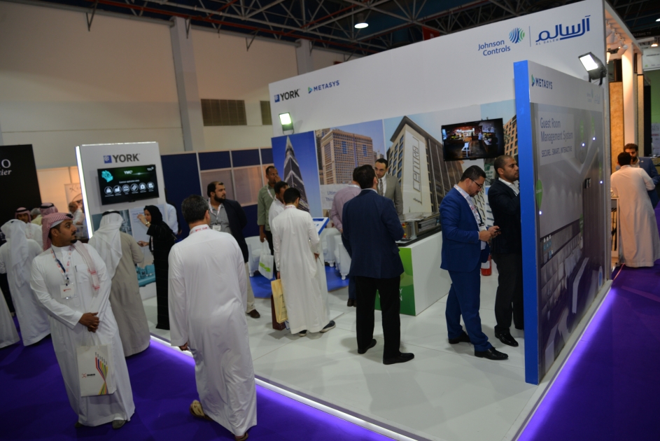 وأثناء المعرض، قدم فريق شركة آل سالم جونسون كنترولز (يورك) في جناحها شرحاً حول نظام إدارة غرف النزلاء بالفنادق Guest Room Management Systemونظام إدارة المباني. وتبرز هذه الحلول في زيادة الكفاءة، وخفض تكاليف التشغيل، وزيادة العائد على الاستثمار للفنادق، بالإضافة إلى تعزيز تجربة النزلاء من خلال التحكم الذكي الخاص بهم الموجود في كافة الغرف، وسهولة التشغيل، وتعديل حرارة التكييف والتبريد. كما قدم الفريق شرحاً عن حلول التبريد والتهوية والتكييف التي زودت بها الشركة برج الساعة في مكة المكرمة، من خلال نظام فريد في نوعه وحجمه، حيث بلغت قدرته 50 ألف طن تبريد (ما يعادل تبريد نحو 5 آلاف شقة متوسطة الحجم)، عبر أكثر من 25 مبرد (تشيلر) إضافة إلى 1000 وحدة مناولة هواء سعودية الصنع، والتي تم عرض نموذج منها في المعرض.