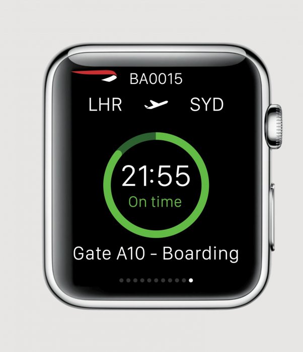 British Airways is set to be one of the first companies to have a specially developed app on the new Apple Watch when it launches on April 24. There will be two elements to the app to make travel even easier for customers of the airline. The 'glance' screen which appears on the Apple Watch face will display a summary of their flight including the departure time, the flight status and a countdown to a departure time. Customers will also benefit from timely check-in and airport gate notifications, and those using the lounges at Heathrow's Terminal 5 will receive iBeacon powered welcome messages. British Airways was one of the first airlines in the UK to utilise iBeacon technology in its lounges and uses it to provide customers with useful and timely information as they pass through the airport. A swipe of the 'glance' screen will open the BA app, designed to fit the Apple Watch screen and make it easy and quick to interact with. It will display a more detailed summary of the customer's next flight, the flight number, route, departure time, flight status, a countdown to the departure time and the weather at the destination. -ENDS-