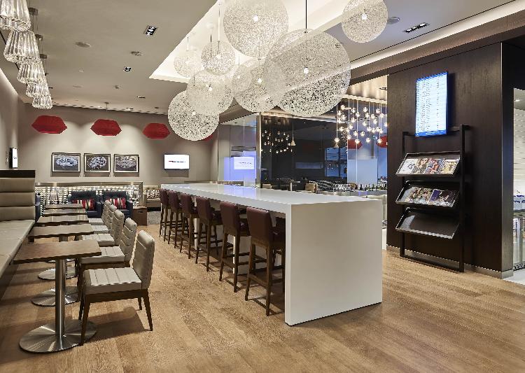 The new premium lounge has a large framed wall mirror that reflects the stunning feature lighting making a more spacious setting. Customers can also choose from a selection of hot and cold food as well as enjoy premium beverages at the Deli Bar.