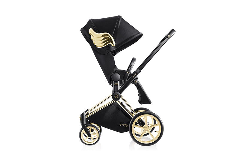 CYBEX also partnered for a second time with iconic fashion designer Jeremy Scott. The 2016 Fashion Collection, titled “WINGS.” was inspired by the slogan “adults suck, then you are one” and featured Scott’s golden wings motif with gilded accents on the CYBEX PRIAM stroller, ATON Q infant car seat, and 2.GO baby carrier.
