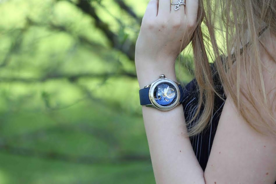 It is at the heart of this watch that the action unfolds. Equally complex and refined, the Bubble watch reveals all its inner workings via the dial, complete with endless structures.