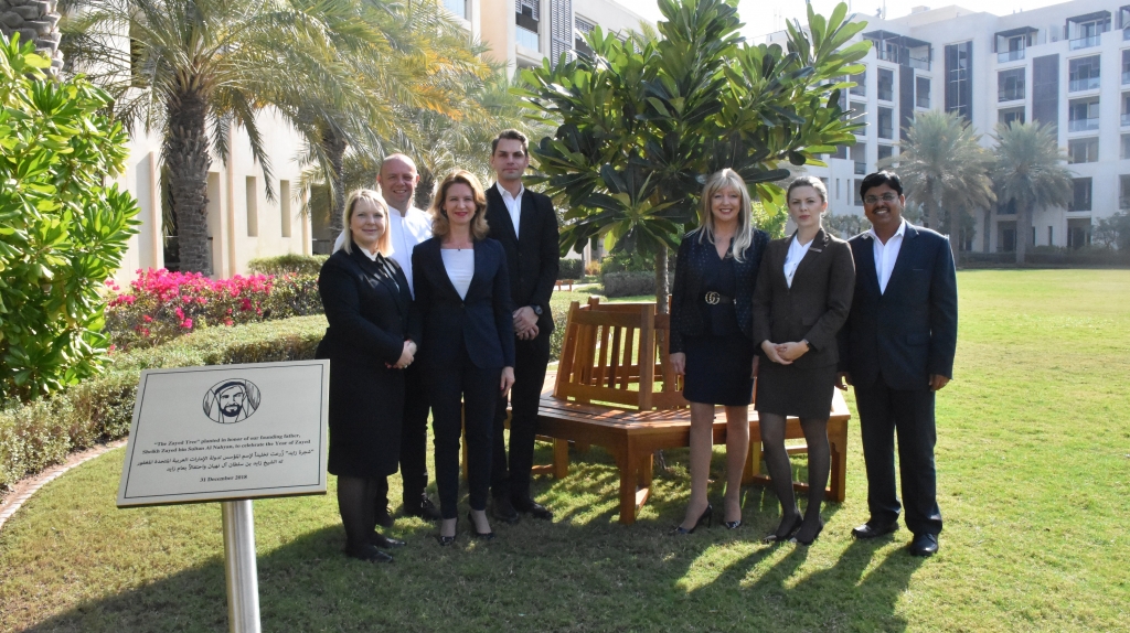 With the support of the DCT, the Park Hyatt Abu Dhabi Hotel & Villas team and a media delegation from Abu Dhabi participated in planting a tree complete with a plaque, at the luxury beach resort’s central lawn. The landmark event recognized the thought, approach and vision of the revered Sheikh Zayed bin Sultan Al Nahyan, with the tree being a physical embodiment that highlights the environmental aspect in the life of the late founding father.