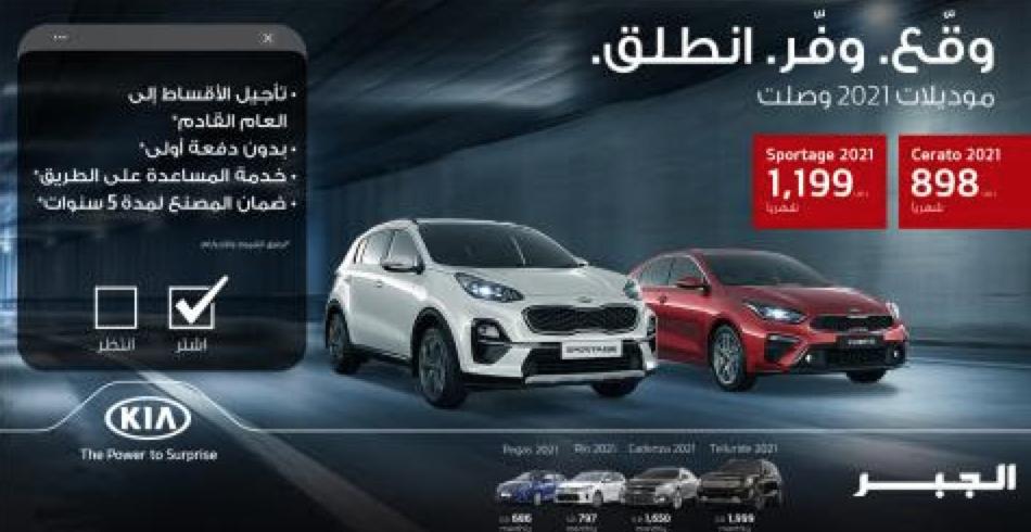 Aljabr Trading Company; Kia motors agents in KSA in cooperation with Aljabr Financing Company has launched its biggest offers for this year getting an awesome car of its wide range of various models, under the slogan: "Sign .. Save Money .. Take Off" and that the campaign is providing so many financing advantages for owning a car throughout June this year, with a fixed insurance rate of only 3.5%, in addition to the roadside assistance services as a further advantage added to the value of an irresistible offer on owning these new models of Kia motors cars. The offer applies to 2020 and 2021 models, and the most important advantage is that the customer can start paying for the installments after the first three months, starting from this September in specific.