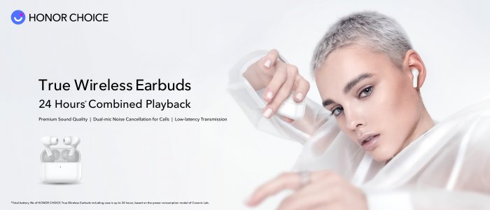 Delivering a true wireless seamless listening experience, the HONOR CHOICE True Wireless Earbuds provide premium sound quality and unparalleled long-lasting battery life, all packed into an intuitive and smart design. The HONOR CHOICE True Wireless Earbuds offers a 6-hour continuous music playback with up to 24-hour long battery life in a single charge. It can also support up to four hours of phone calls and keep users connected day and night.