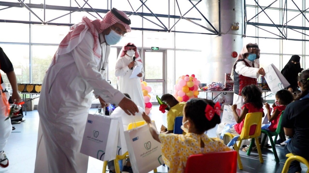 The Riyadh Candles Volunteer Team, in cooperation with the Pioneers and Talents Forum, has organized an initiative to greet kids of the Kayan Association for Orphans, sponsored by Abdul Mohsen Al Hokair Center for Community Service.  All children were gathered at Sparky's Panorama Mall, and they were given gifts and shared the festival atmosphere with joy and fun in all the entertainment places.