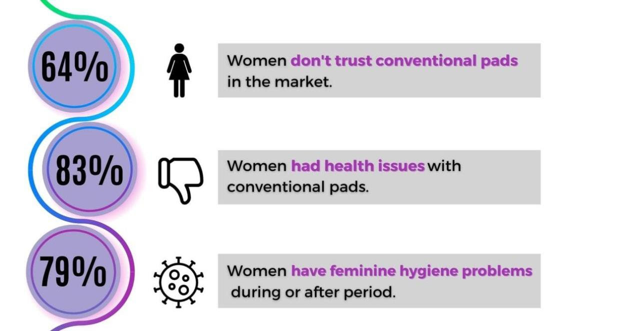 Also, in the survey, about 64.3% of respondents said they were unhappy with the existing, conventional pads available widely in the market today. Typically, such pads contain certain materials and chemicals that can cause allergic reactions like Contact Dermatitis. They are also prone to friction from strenuous activities such as running and walking, leading to rashes and irritations. These common problems have found a definitive solution in nanotechnology-based pads.