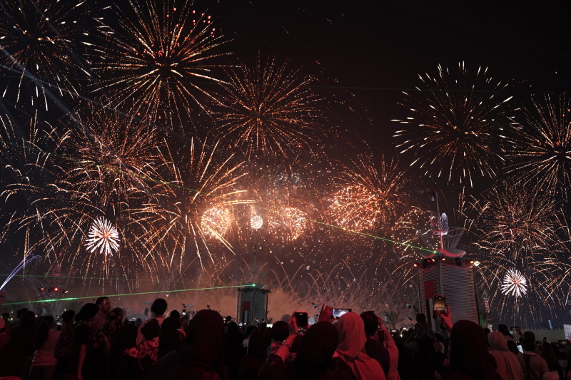 On Friday, 2nd of December, the spectacular fireworks display lighted up the skies of Al Wathba to the delight of a large number of visitors. On Saturday at 10 pm, 3rd of December, the fireworks displays will continue along with a remarkable drone show with the theme, “Together for the Future”, that highlights the story of the nation and its successful journey to progress.